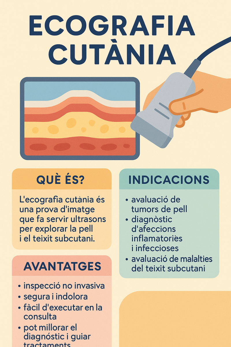 L’ecografia cutània és una tècnica d’imatge no invasiva que utilitza ultrasons d’alta freqüència (normalment entre 15 i 22 MHz, o més en dermatologia) per explorar les estructures de la pell i el teixit subcutani.